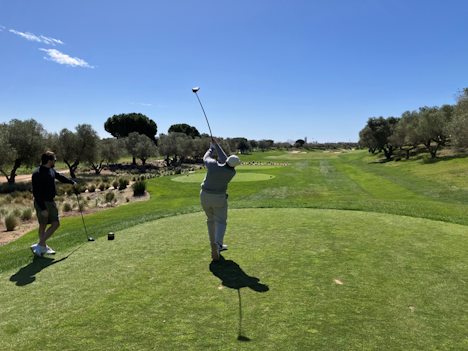 Det er ikke en rendyrket golfklubb, men mer som en lokal sportsklubb med 18 hulls golfbane i landlige omgivelser. Banen ligger fint i det kuperte terrenget med oliventrær og pinjer omkring fairwayer og greener. Fra deler av banen er det utsikt til havet. Vi spilte den ikke, men omvisningen vi fikk ga et positivt inntrykk, selv med en noe rufsete tilstand på grunn av mangel på vann.