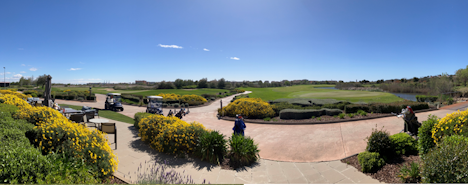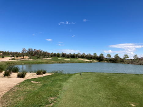 Vi spilte 18 hull på Lakes, en links type bane, designet av Greg Norman (par 71, 6317 m) . Den ligger inntil et vernet område, med mange vann og mye våtmark, slik navnet tilsier . Det er derfor heller ingen bebyggelse inntil banen.