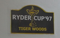 Bak dette dørskiltet bodde Tiger Woods under Ryder Cup i 1997. Nå kan du bo der. Foto: A. Ramnefjell.