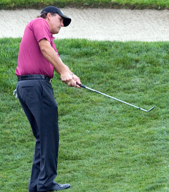 På det 17. hullet traff Henrik Stenson ballen litt tjukt, men den landet på