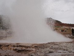 Det er temmelig dramatisk når jordens indre plutselig fosser høyt opp i lufta. Geysir fotografert akkurat ved et utbrudd.  Øyeblikksfoto: A. Ramnefjell