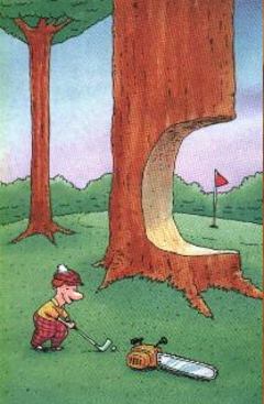 Kanskje et golfkurs hadde gjort at spilleren ikke trengte å bruke motorsagen?