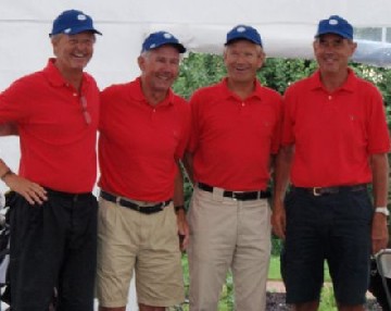 Bildet: Et godt fornøyd lag fra Haga GK som vant herreklassen. Fra venstre: Rolf Amlé - norsk mester fra Sverige, Erik Ulleberg, tidligere norgesmester i tennis, Asbjørn Ramnefjell, tidligere norgesmester i basketball, Knut Ellingsen, norgesmester for første gang i golf.