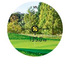 sirkel i søkeren når avstanden til det første målet (flagget) vises.
