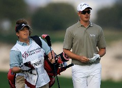 med sin gamle caddy Fanny Suneson som tidligere gikk for Nick Faldo.
