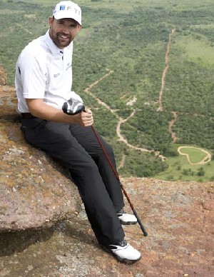greenen som er formet som Afrika-kontinentet. Han tok noen treningsslag for å