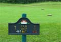 sentral informasjon om hullet. Skiltet står ved inngangen til tee-stedet. Her