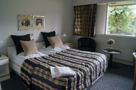 Det er koselige rom på Hotel Pejsegården
