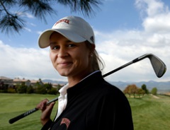 Hun var 3 under par etter 15 hull mandag ettermiddag. Dette ser meget bra ut! Da