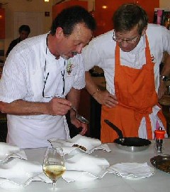 Golfsiden var på kokkekurs i denne fantastiske restauranten. Det var en stor opplevelse. Elevene måtte spise opp maten de lagde. Det var ikke noe problem med en så god læremester som Stéphane RAIMBAULT. Dette kan absolutt anbefales på det sterkteste. Det hele minnet litt om skolekjøkkenet i gamle dager, men bare litt. Her var det selvsagt mye høyere kvalitet, andre ingredienser og ikke minst en læremester på meget høyt nivå. Det er morsomt å kunne stille spørsmål til en som virkelig kan sine ting. Denne kursvirksomheten ligger like ved siden av restauranten og man kan ta kurs på noen timer hvor man lager egne retter, og det er mye å velge mellom.