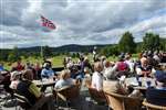 Med flagget til topps og utsikt over det flotte anlegget var det stor stemning på terrassen. Foto: Tom Aslesen