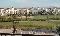 Bildet er tatt fra hotellet på Mar Menor og viser golfbanen og boenheter rundt i området. Merk alle leilighetene i horisonten