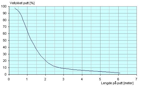 Sannsynligheten for å senke en putt synker som vi forstår dramatisk med avstanden!